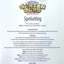 Dit ganzenbord bordspel voor kinderen is een ware klassieker en een heerlijk familiespel. Het kartonnen borspel met een afmeting van 48 x 48 centimeter wordt geleverd met 6 houten ganzen en natuurlijk 2 dobbelstenen en speluitleg. Het spel beeld een levensweg uit waarvan de loop wordt bepaald door het lot: de dobbelstenen. Het spel is geschikt voor 2 tot 6 spelers en is voor kinderen vanaf 6 jaar geschikt. Natuurlijk is het mogelijk om in teams te spelen. Dit leuke ganzenbord bordspel mag natuurlijk niet ontbreken in de spelletjeskast!