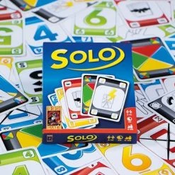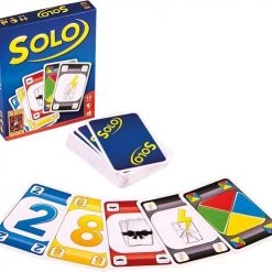 Elke beurt leg je een kaart op de stapel met dezelfde kleur of hetzelfde getal als de kaart ervoor. Kun je niet, dan moet je een kaart pakken. Verschillende actiekaarten geven je extra mogelijkheden. Solo is een variant op pesten, maar dan leuker. Met een keur aan nieuwe actiemogelijkheden kun je je tegenstanders nog meer dwars zitten dan anders. Je staat er echter helemaal alleen voor, dus wees niet verbaasd als je met je eigen trucs wordt bestreden!