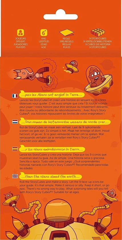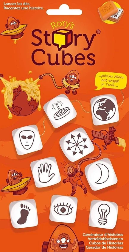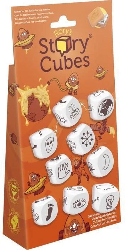 Gooi de dobbelstenen en maak een verhaal rondom de 9 zichtbare afbeeldingen. Er is maar ??n regel: er zijn geen foute antwoorden. Laat je creativiteit dus de vrije loop. Dankzij de onbeperkte mogelijkheden bieden de Story Cubes uren aan speelplezier voor alle leeftijden.