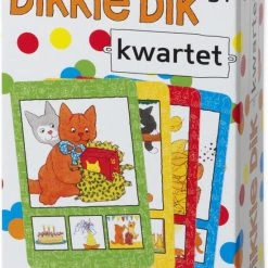Heb jij voor mij… Dikkie Dik met de bal? En met Beer? Kwartet! Het blijft een spel dat leuk is voor jong èn oud, want wie is er nou niet opgegroeid met deze gezellige knuffelkat? Het spel bestaat uit 32 kaarten met afbeeldingen uit de boeken van Dikkie Dik, wat het voor iedereen heel herkenbaar maakt. Verzamel de vier kaarten die samen het kwartet vormen, degene met de meeste kwartetten is de winnaar. Het spel is ook geschikt voor kindjes die nog niet kunnen lezen, omdat alleen plaatjes zijn gebruikt en geen teksten.