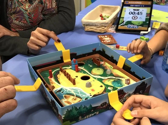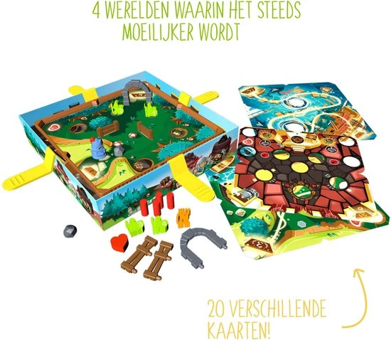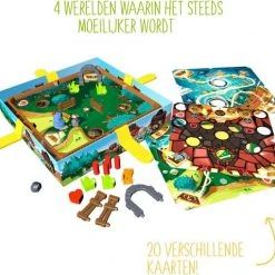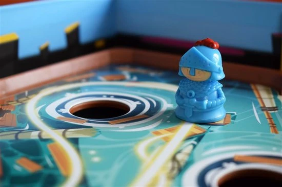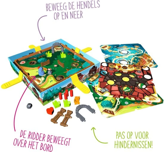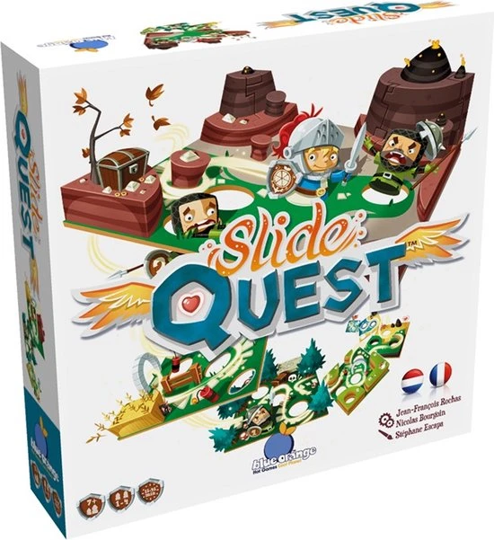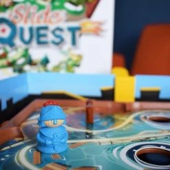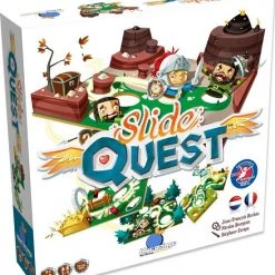 Slide Quest is een fantastisch bordspel waarbij je samen met je vrienden de ridder probeert te helpen om het einde van elke kaart te bereiken en daarbij valstrikken en obstakels te vermijden. Gebruik de hendels (die je aan de doos vastmaakt) om de ridder te laten schuiven, maar let op: er zijn diverse hindernissen, bewakers en een schurk die jouw weg moeilijk maken en jouw levensteller laten dalen… Geweldig spel voor het leren van behendigheid en samenspel.