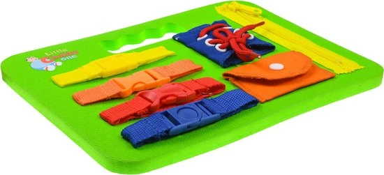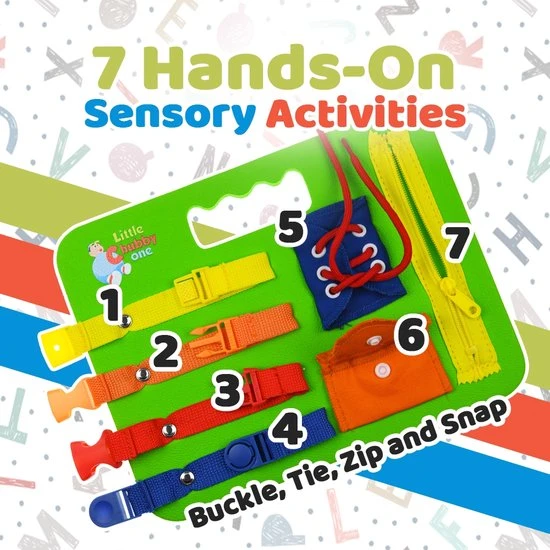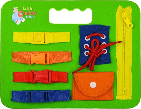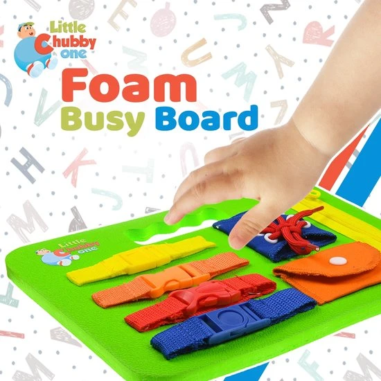 Sensory Busy Board: De kleintjes betrokken houden terwijl ze hen helpen hun fijne motoriek te ontwikkelen, zit Little Chubby One’s Foam Busy Board vol met 7 prachtige, hands-on zintuiglijke activiteiten. Ontwikkelingsspeelgoed: Wanneer kinderen vastbinden, strikken, ritsen en klikken, biedt dit Sensory Busy Board tactiele en sensorische stimulatie en helpt tegelijkertijd fijne motoriek en hand-oogco?rdinatie te ontwikkelen. Leermiddel: Dit interactieve speelgoed heeft een veter-/bindactiviteit om de fijne motoriek verder te bevorderen. Dit leert niet alleen belangrijke verbandvaardigheden, maar het verbetert ook de vingerkracht en behendigheid om op te starten.