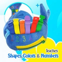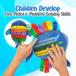 Ontwikkelingsspeelgoed: als kinderen de gespen aan de gekleurde bandjes bevestigen, biedt dit Sensory Buckle Whale Pillow tactiele en sensorische stimulatie en helpt tegelijkertijd fijne motoriek en hand-oogco?rdinatie te ontwikkelen.