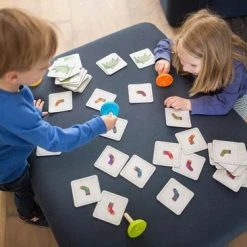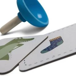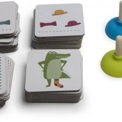 Genomineerd voor Speelgoed van het Jaar 2019! Oh oh…de krokodil is een beetje van slag. Hij is op zoek naar zijn sokken, maar hij kan geen gelijk paar vinden! Draai een kaart om en vind als eerste een sok met de plopper. Maar let op! Heeft de krokodil een linker sok of een rechter sok nodig?