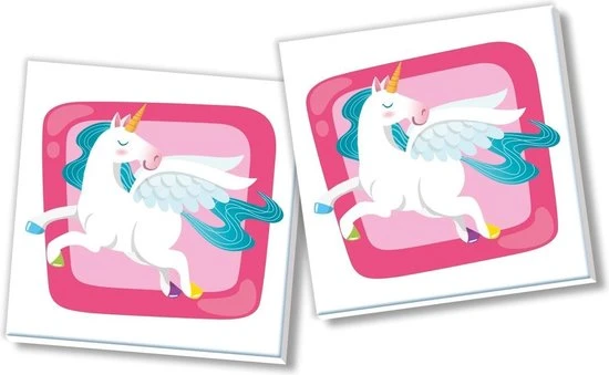 Een geheugen- en associatiespel. Het doel van het spel is om de paren te vinden door je visuele geheugen te gebruiken. De winnaar is degene die de meeste paren heeft gevonden. De 48 kaarten zijn ge?llustreerd met afbeeldingen van magische eenhoorns. Stimuleert het observatievermogen, het geheugen en het concentratievermogen. Voor 1+ spelers.