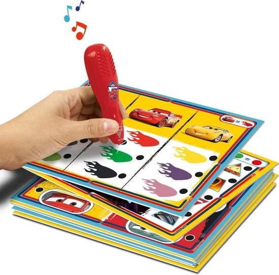 Eindeloos leerplezier met de interactieve pen, 24 kaarten en ruim 200 geïllustreerde quizzen in het gezelschap van de legendarische figuren uit Cars 2.