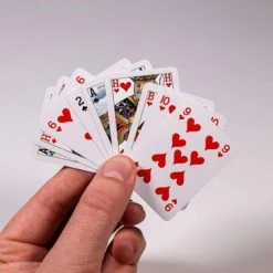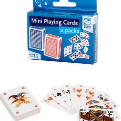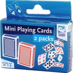 Mini speelkaarten in de echte Clown Games uitvoering! Twee sets speelkaarten waarmee je oneindig veel spelletjes kunt spelen. Ideaal voor op vakantie, of als je de kaarten wat compacter op tafel wilt leggen. Afmetingen van de kaarten: 5,3 cm hoog en 3,8 cm breed. Inhoud: 1 pak mini-kaarten in rood en 1 pak mini-kaarten in blauw. Wordt geleverd in full-colour doosje. Geschikt voor kinderen vanaf 5 jaar.