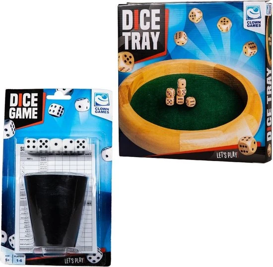 Clown Games dobbelbak van hout. Rollen bij jullie thuis ook altijd de dobbelstenen van tafel? Gebruik dan deze handige dobbelbak, inclusief dobbelstenen! Hiermee kun je allerlei leuke dobbelspellen spelen. En een Yahtzee dobbelset met scoreblok!