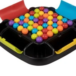Clown Games Rainbow Ball Game. Bij dit leuke spel plaats je balletjes op een bord. De balletjes hebben alle kleuren van de regenboog. Het doel van het spel is, om een rij met balletjes op een strategische manier te verschuiven, zodat zoveel mogelijk balletjes van dezelfde kleur op elkaar aansluiten. Alle aangrenzende balletjes mogen worden verzameld: wie er de meeste verzamelt, heeft gewonnen! Het bord heeft opbergvakken in 4 kleuren, zodat je na het spelen alle balletjes kunt opruimen. Inhoud: speelbord, 48 regenboogballetjes. Wordt geleverd in full-colour verpakking. Geschikt voor 2 tot 4 spelers vanaf 6 jaar.
