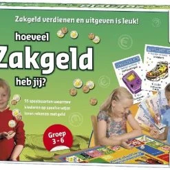 Een vraag die ieder kind bezighoudt als het zakgeld krijgt, is: hoeveel zakgeld krijg ik en hoeveel kan ik ermee doen? In dit bordspel draait het erom zoveel mogelijk zakgeld te verzamelen. En dat kan ook met sparen! Erg leerzaam. Inhoud: speelbord, 55 speelkaarten, speelgeld in uiteenlopende waardes, dobbelsteen, spelregels. Voor 2-6 spelers vanaf 6 jaar.