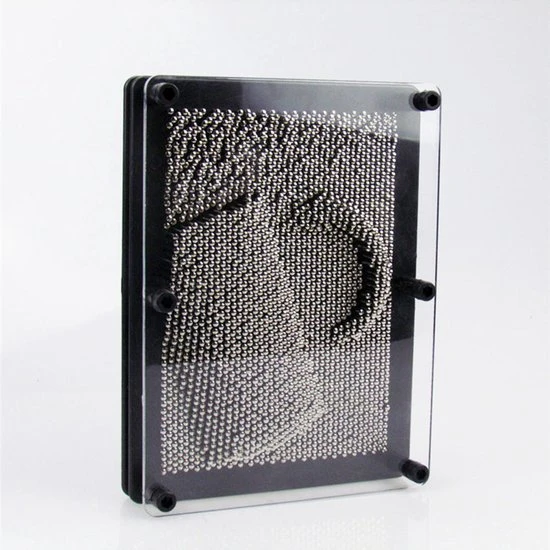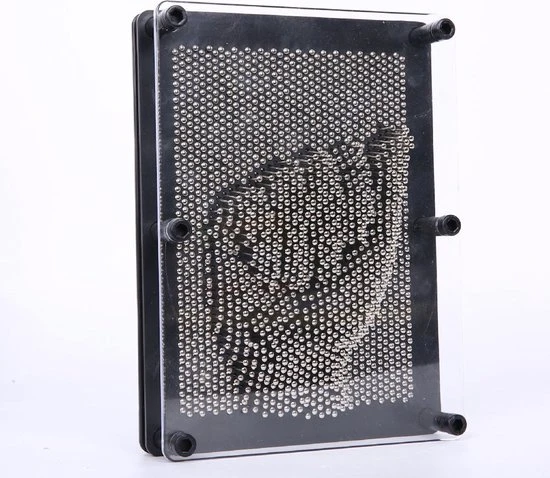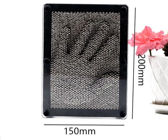 Laat je creatieve kant zien met Pin Art ! Vereeuwig je handen, je gezicht of andere voorwerpen in indrukwekkende sculpturen gemaakt van metalen pinnen. Met het 3D spijkerspel maak je binnen enkele seconden prachtige driedimensionale beelden. Hiervoor hoef je enkel het lichaamsdeel of een voorwerp van achteren tegen de spijkers te drukken, waarna je het prachtige kunstwerk kunt bewonderen. Laat het spijkerspel rechtop staan en maak indruk met de individuele decoratie in het woonkamer.