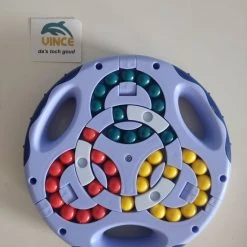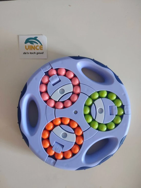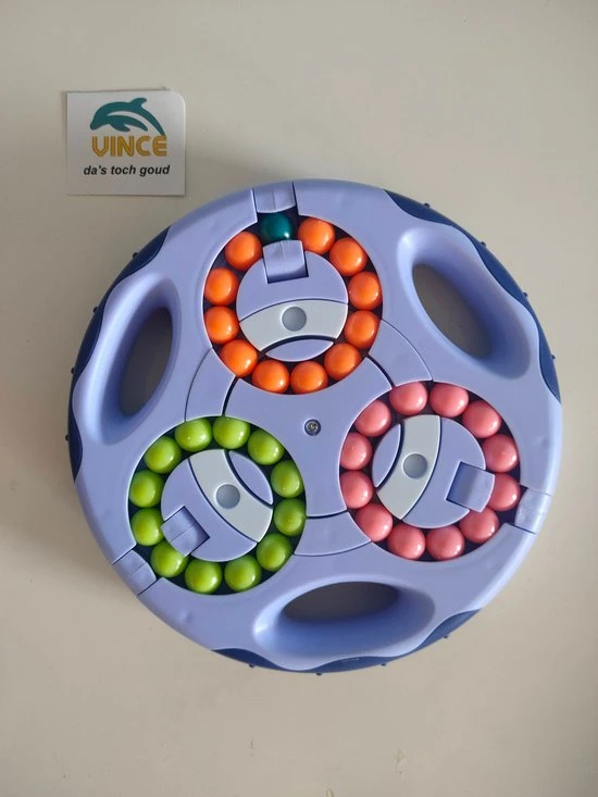 als dat nog niet moeilijk genoeg is kunnen de 3 kleuren aan biede kanten ook door elkaar gemixed worden door de 3 draaibare elementen aan de buitenzijde.