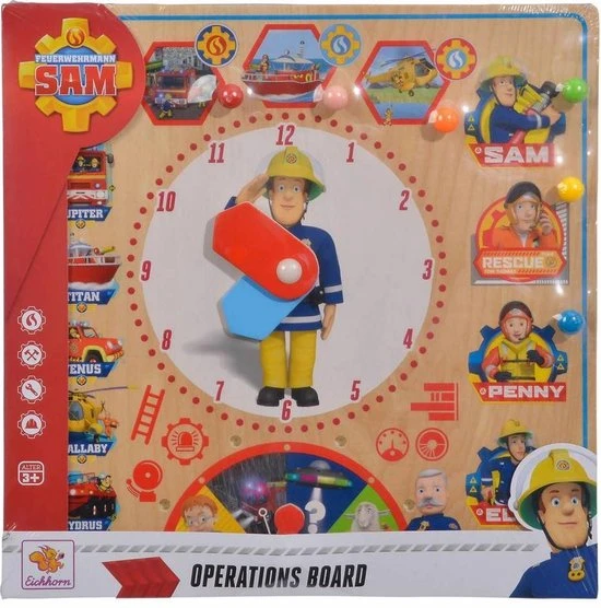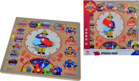 Simba Brandweerman Sam Operations BoardLeer nu klok kijken met deze houten klok van Brandweerman Sam! Zet de klok op verschillende tijdstippen en laat jouw kind de tijd lezen. Met de kleurrijke afbeeldingen ontdek je ook hoe de dag van Brandweerman Sam eruit ziet.