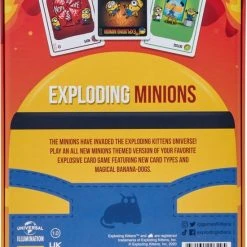 De makes van Exploding Kittens hebben uitgebreid en introduceren Exploding Minions! De Minions die bekend zijn van de Verschikkelijke Ikke en Minions films mogen ook deelnemen aan het russische roulette kaartspel! Net als bij Exploding Kittens is het doel bij Exploding Minions om niet te ontploffen dankzij een Exploding Minion-kaart. Heb je een Defuse kaart, dan ben je veilig voor de Exploding Minion. Met de andere kaarten die je in de hand hebt, moet je er alles aan doen om de Exploding Minion.
