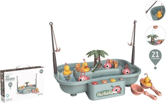 Met 3 verschillende water standen staat dit vis-spel garant voor urenlang vissertje spelen met plezier. Rond het tropische eiland zwemmen visjes en eendjes rond. Het vis-spel maakt geluid en de knoppen geven licht.