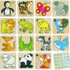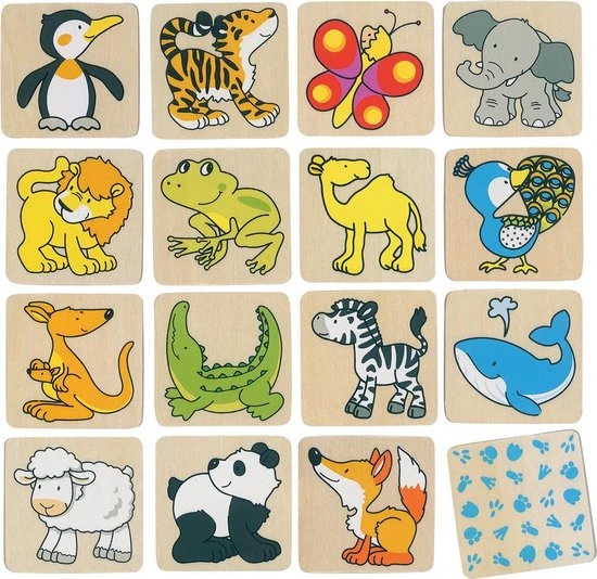 Leuke 32-delige Geheugenspel set in opbergdoosje. Met 16 setjes houten Geheugenspel steentjes.