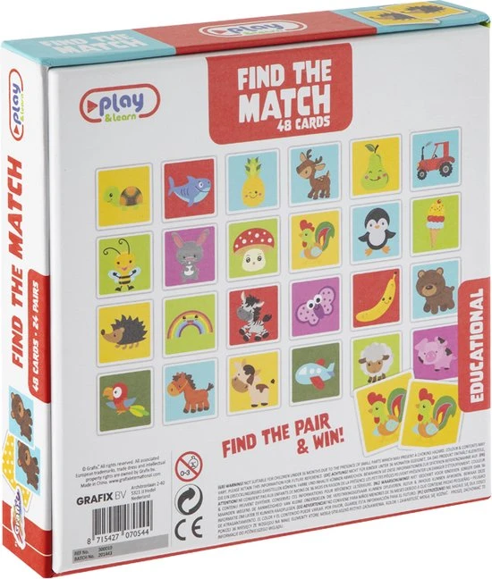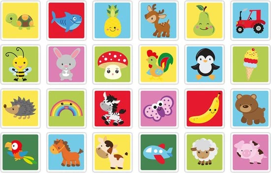 De jongste speler begint het spel. Draai willekeurig twee kaartjes om en laat ze duidelijk aan de andere spelers zien. Bij twee dezelfde kaartjes mag de speler de kaartjes houden en nog een keer twee kaartjes omdraaien. Zijn de kaartjes niet hetzelfde, dan worden de kaartjes weer terug omgedraaid. Probeer deze te onthouden voor later in het spel. De volgende speler is nu aan de beurt.
