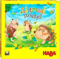 Memory spel Allemaal stekeltjes! is een spel met grappige 3D-egelfiguurtjes, vrolijk dobbelplezier met trekken, raden en insteken. Vandaag verkleden de egelkindjes zich: ze willen graag grote stekels in hun lievelingskleur! Hiervoor moeten de spelers blaadjes in de juiste kleur uit het blaadjeszakje halen. Maar pas op: de wind kan de bladeren flink door elkaar blazen en dan gaan je blaadjes er weer vandoor! De speler die zijn/haar egel als eerste helemaal met blaadjes in de juiste kleur heeft versierd, wint.