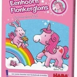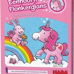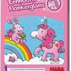 Eenhoorn Vriendenkwartet van het Duitse merk Haba is een kaartspel. Eenhoorn Flonkerglans en haar vriendinnen spelen vandaag kwartet! Wie gaat meespelen? Met wat concentratie en de juiste portie geluk kan je vier dezelfde kaarten verzamelen en zo een kwartet vormen. Als beloning krijg je dan een wolkenkristal. Wie slaagt erin om de meeste wolkenkristallen te verzamelen? Bevat: 32 kwartetkaarten, 6 wolkenkaarten, 8 wolkenkristallen, 1 handleiding. Speelduur: 10 tot 15 minuten Spelers: van 2 tot 6 Vanaf 4 tot 99 jaar Materiaal: karton, kunststof Merk: Haba Waarschuwing: niet geschikt voor kinderen jonger dan 3 jaar. Kleine onderdelen. Verstikkingsgevaar.