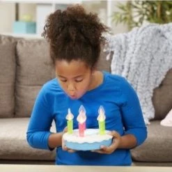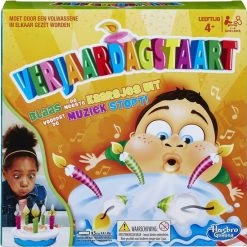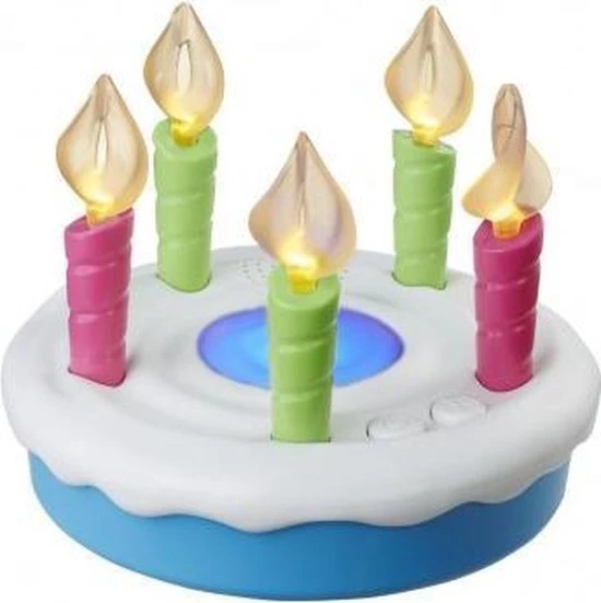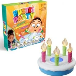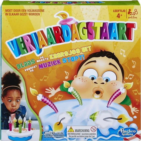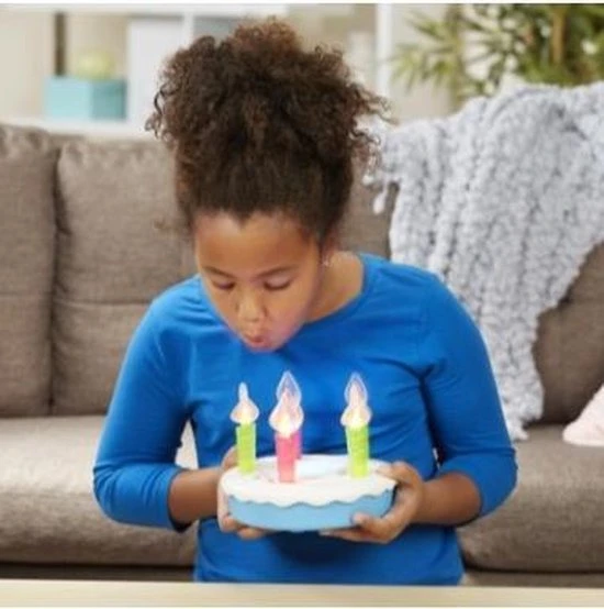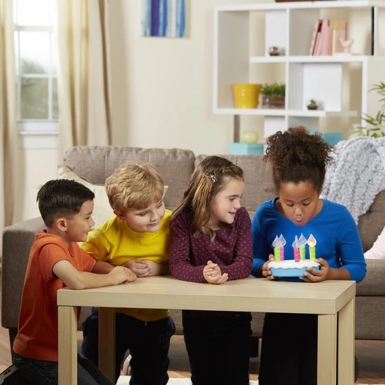 Met het spel Verjaardagstaart is het elke dag een verjaardagsfeestje! Beleef de spanning van een verjaardag elke keer als het spel gespeeld wordt. Start het spel en de kaarsjes op de taart gaan aan. Blaas alle kaartjes uit voor het muziekje stopt en win het spel! Door de onvoorspelbaarheid zorgt het spel voor urenlang speelplezier en is het ideaal voor het hele gezin.