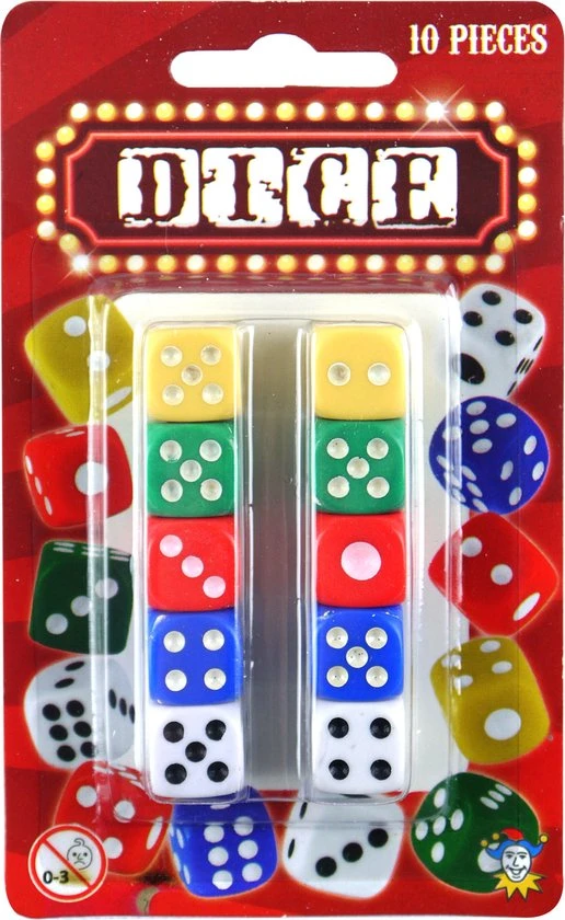 Henbrandt Dobbelstenen, 10 stuks. Een set van 10 dobbelstenen die kleurrijk en uniek zijn dankzij de verschillende kleuren is het nu nog leuker om bordspellen te spelen of andere activiteiten te doen. Materiaal: kunststof. Kleur: geel, groen, rood, blauw en wit.