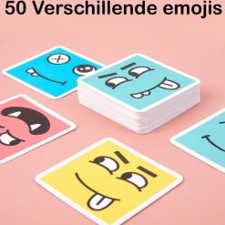 ? Inhoud: 1x Bel, 4 Blokjes (3st per blok), 50st Emoji kaarten, 1x Handleiding