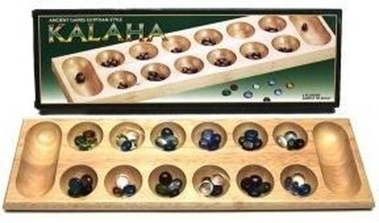 HOT Games Kalaha Blank Hout Met Glazen Stenen 45 Cm.