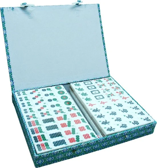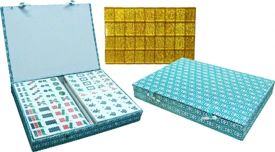 HOT Games Mahjong Spel – Kunststof Steen Wit/goud,koffer Groen Stof