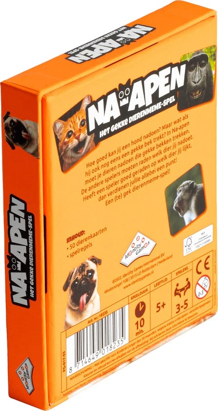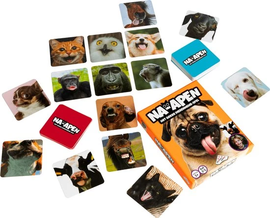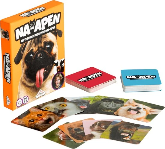 Hoe goed kan jij een hond nadoen? Maar wat als hij ook nog eens een gekke bek trekt? In Na-apen moet je dieren nadoen die gekke bekken trekken. De andere spelers moeten raden welk dier jij nadoet. Heeft een speler goed geraden op welk dier jij lijkt, dan