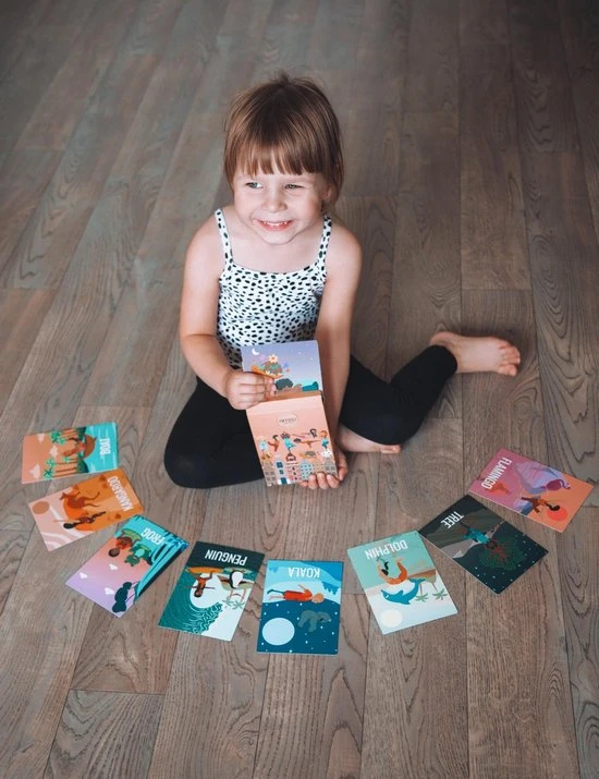 Met de hand geïllustreerde inclusieve yogakaarten voor kinderen. Yoga is een geweldige bewuste activiteit voor de kleintjes en helpt het zelfvertrouwen, lichaamsbewustzijn en mindfulness te vergroten. Het IMYOGI-deck bevat 30 kaarten, verdeeld in 6 op kleur afgestemde categorieën die je door een goed afgeronde yogapraktijk leiden, van warming-up tot cooling-down. Het maken van sequenties is een fluitje van een cent voor u en zo leuk voor de kleintjes. De achterkant van elke kaart is in kleur gecoördineerd om de categorie aan te geven. Het bevat ook eenvoudige stappen om je correct en veilig in de pose te begeleiden, samen met de naam van het dier en zijn leefgebied, een leuke manier om leren over yoga en de natuur te combineren. Geweldig als: Verjaardag / kerstcadeau Rustige hoekjes Hersenen breken Inleiding tot mindfulness voor de kleintjes