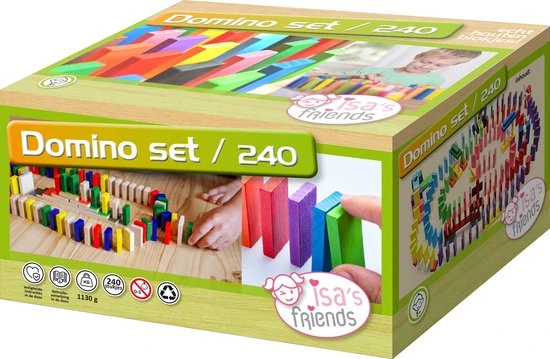 Isa’s Friends Domino Stenen Set Hout 240pcs – XL Dominoset Incl. 4 Elementen