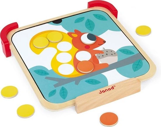 Dankzij deze magnetische ezel leert uw kind de kleuren door de tekeningen aan te vullen met behulp van tal van veelkleurige stippen! Grote stippen aangepast aan kleine handjes en een leistenen basis om zijn/haar creativiteit op te wekken! Geschikt voor kinderen van 2-5 jaar.