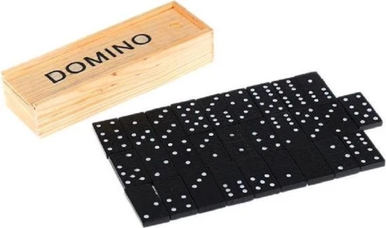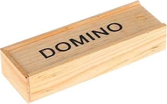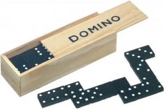 Domino spel in houten kistje. Klassiek domino spel in houten kistje. Het houten kistje bevat 28 dominostenen. Het formaat is ca. 15 x 5 x 3 cm groot. Handig om bijvoorbeeld mee te nemen op reis.