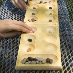 Mancala is een spannend strategisch bordspel wat vooral in Afrika gespeeld wordt. Het ideale bordspel voor in je collectie naast Ganzenbord en Mens Erger Je Niet. Het is te spelen met 2 personen. Je speelt dit spel op een mancala bord en je gebruikt steentjes, deze worden meegeleverd. Het doel is om de stenen van de tegenstander te veroveren. Dit spel is ook ideaal om op reis mee te nemen.