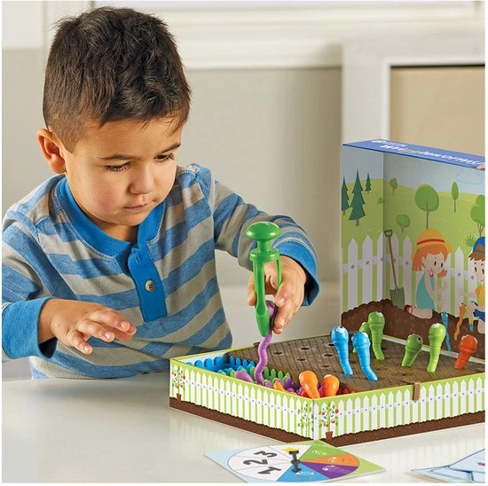 Oefen de fijne motoriek met deze vrolijke kronkelwormen! Pak de speciaal ontworpen Tri-Grip Tang om wormen te vangen en uit het activiteitenbord te trekken. De Tri-Grip Tang heeft een vingerplaatsing waardoor de kinderen vanzelf de goede pengreep gebruiken.