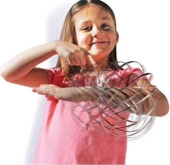 Laat hem over je arm rollen als een magische bubbel van staal. En voer de mooiste trucs hiermee uit. Gooi hem in de lucht in samengedrukte vorm en vang hem weer op als een prachtig uitgeklapt rond ringenstelsel. De Kinetic Slinky Flow Ring is goed voor uren lang plezier. En zodra je ermee klaar bent, kan je hem even makkelijk weer terug toveren naar zijn oorspronkelijke armband-vorm door er vanboven op te drukken. Zit verpakt in een doosje.