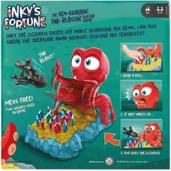 Inky’s Fortune is een spannend spel voor kinderen dat geduld leert en helpt bij het ontwikkelen van handvaardigheid en motoriek! Inky the Octopus lijkt te slapen, maar als kinderen zijn schat proberen te pakken, kan hij in actie komen en de inktvlek opblazen en zijn “edelstenen” behouden! Elke “edelsteen” moet langzaam worden gedraaid en gedraaid om het te verwijderen. Als het veilig wordt uitgetrokken, wordt het toegevoegd aan de verzameling van die speler. Bevat 16 “Edelstenen” zodat 2 tot 4 tegelijk kunnen spelen. Inky’s Fortune is een geweldig cadeau voor kinderen vanaf 6 jaar.