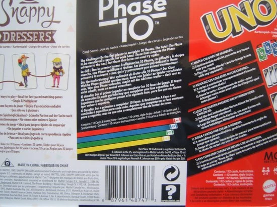 • PHASE 10: Spelers moeten hun kaarten gewiekst spelen om alle 10 fasen van het spel uit te spelen.