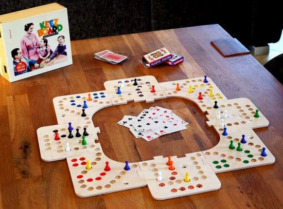 Met dit Keezbord kan je zowel met 2, 4, 6 als 8 personen Keezen. Werk bij het 4-, 6- en 8-persoons spel samen met je partner en zorg er voor dat alle pionnen zo snel mogelijk in jullie honk staan. Om het Keezen spel te winnen zul je elkaar moeten helpen!