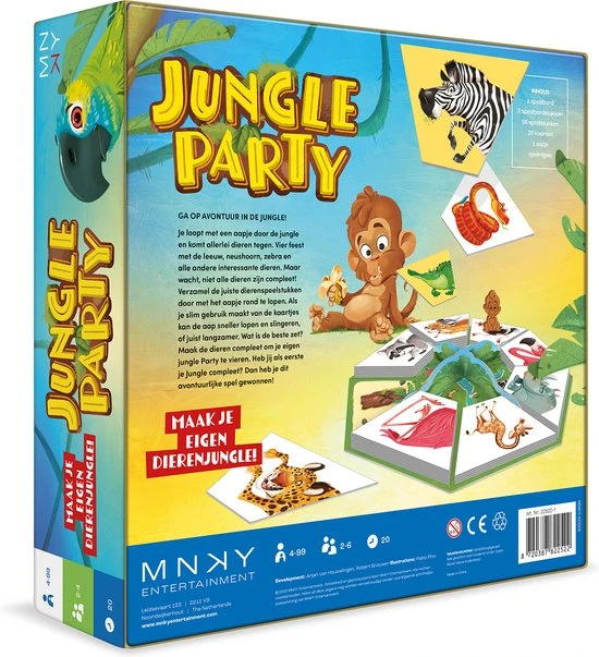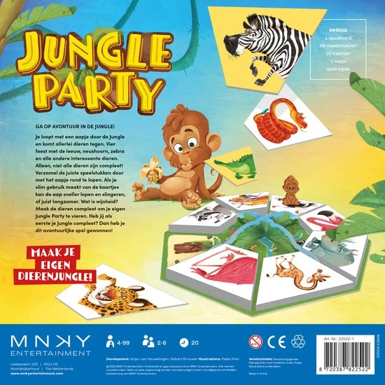 Slinger met het aapje en zie wie er allemaal naar de jungle zijn gekomen. Bouw een feestje met de leeuw, neushoorn, zebra en nog veel meer dieren. Maar wacht, niet alle dieren zijn compleet! Verzamel de juiste speelstukken door met het aapje rond te lopen. Als je slim speelt kan de aap sneller lopen en slingeren, of juist langzamer. Wat is de beste zet? Maak de dieren compleet en vier je eigen jungle party. Doe jij dat als eerste? Dan heb je dit avontuurlijke spel gewonnen!