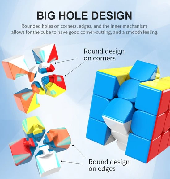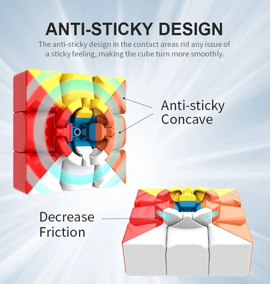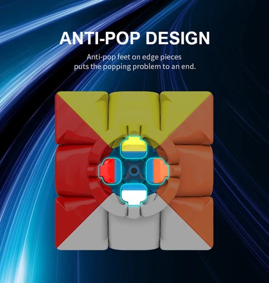 Om mee te beginnen heeft de cube een anti-stroefheid ontwerp, dit zorgt ervoor dat de cube veel soepeler draait. Vervolgens heeft deze cube een zogenaamd ?anti-pop? systeem, dit systeem zorgt ervoor dat er geen blokjes los kunnen raken. Dit maakt de cube erg stevig en gebruiksvriendelijk voor jong en oud.