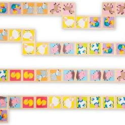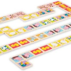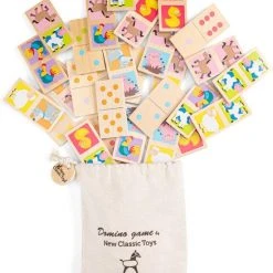Dit houten dominospel van New Classic Toys is een perfect spel voor de kleintjes. Het heeft 28 dubbelzijdige dominostenen met vriendelijke boerderijdieren aan de ene kant en stippen aan de andere kant. Het spelen van dit spel is een uitstekende activiteit voor het ontwikkelen van fijne motoriek, probleemoplossend vermogen en het trainen van logisch denken.