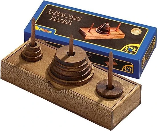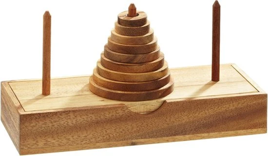 Het doel van dit spel is om de 9 schijven van de middelste staander, naar de 2 andere te brengen door de schijven stuk voor stuk te verplaatsen. Het is niet toegestaan om een grotere schijf boven een kleinere schijf te stappelen. Alle 3 de staanders mogen gebruikt worden.