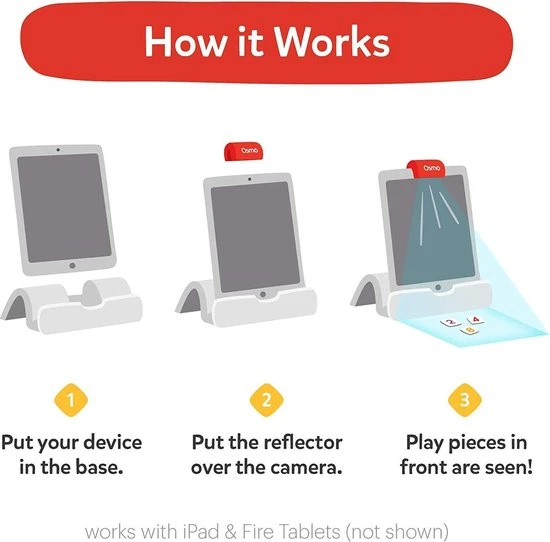 De spellen van Osmo maken het voor kinderen leuk om te leren, waarbij speelgoed dient als leermethode. Osmo is magisch! In 2013 cre?erde Osmo een bekroond spelsysteem waarbij interactie tussen fysieke spelstukken en een iPad en/of Fire Tablet centraal staat. De spelstukken en acties komen hierdoor tot leven (geen WiFi vereist om het spel te kunnen spelen). Osmo combineert het fysiek bezig zijn met innovatieve technologie, waardoor kinderen actief deelnemen in het leerproces. De Osmo spellen zijn niet alleen leuk om te spelen, zij helpen ook bij het ontwikkelen van een breed scala aan vaardigheden, varierend per type spel, zoals: Creativiteit, Probleem-oplossend vermogen, Sociale/emotionele vaardigheden, STEM/STEAM (Science, Technology, Engineering Maths & Art) en meer educatieve mogelijkheden. De spellen zijn gemaakt voor kinderen tussen 3 – 11+ jaar, inclusief beginners niveau tot expert. Osmo maakt het mogelijk om verder te leren. Ouders kunnen de voortgang van de spellen inzien, middels het aanmaken van een profiel voor het kind op de Parents App.