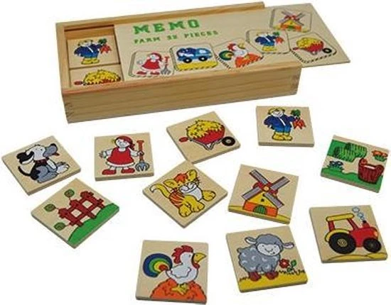 Mooie houten boerderij Geheugenspel spel in handige houten bewaardoos! Vanaf 3 jaar.
