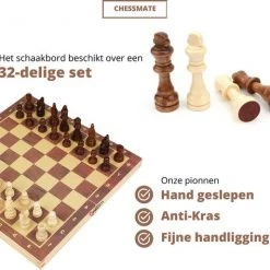 ● De schaakstukken zijn gedetailleerd handgesneden.