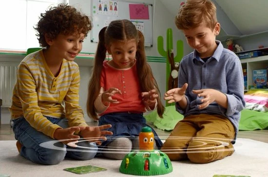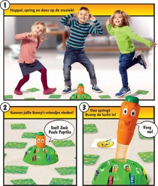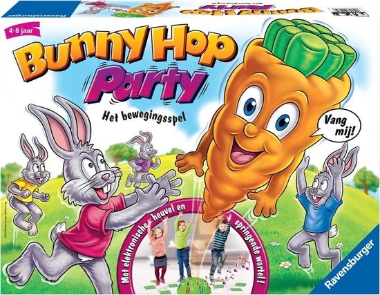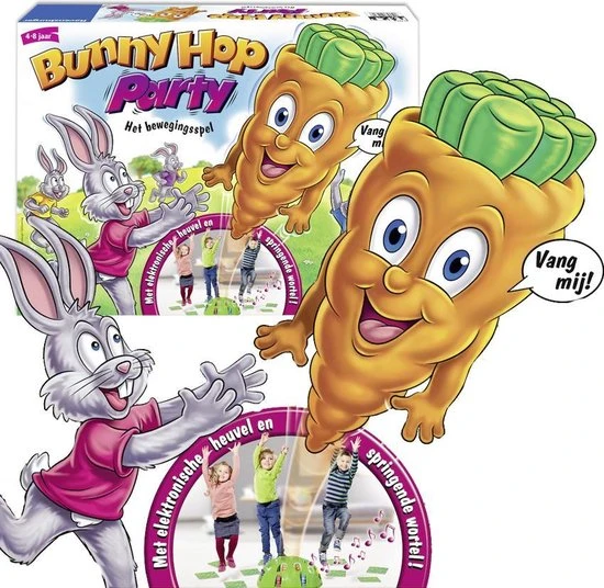 Huppel, spring en dans op de muziek!Zoek de vrienden van Bunny. Als de vrienden zijn gevonden, springt Bunny enthousiast in de lucht. Vang hem!Batterijen: 3x AA niet inbegrepen.Bunny Hop – Party is geschikt voor 1-4 spelers vanaf 4 jaar.