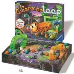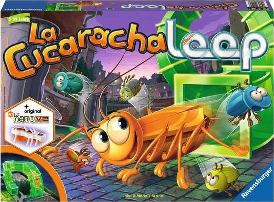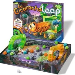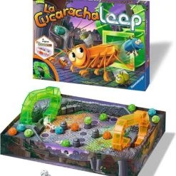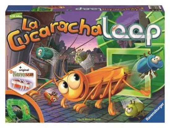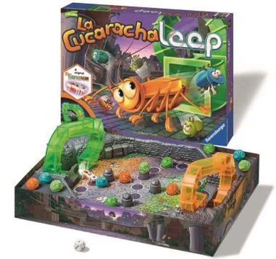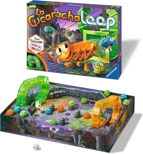 Ravensburger La Cucaracha Loop: Let op, de kakkerlak komt uit het gat! Rennen tot de kakkerlak komt! De kevers dobbelen zich vooruit, tot de kakkerlak via ??n van de loopings naar boven klimt en over de binnenplaats flitst. Heeft hij jullie van het veld geduwd? Zo niet, geluk gehad en snel naar het doel!