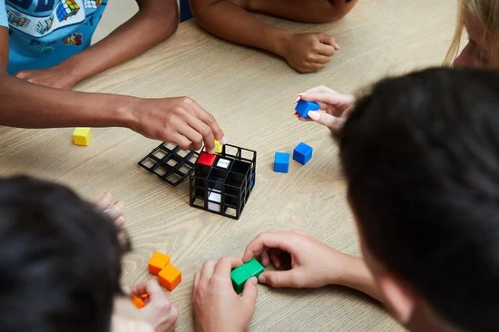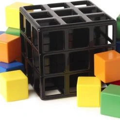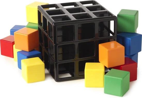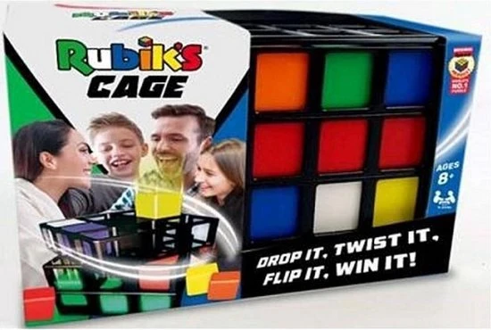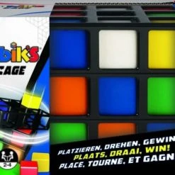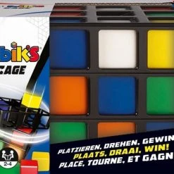 Draaien, Wenden, Keren en Winnen! Rubik’s Cage is voor 2-4 spelers. De speler die als eerste aan een zijde van de Rubik’s Cage 3 cubies van dezelfde kleur op een rij heeft – verticaal, horizontaal of diagonaal – is de winnaar!