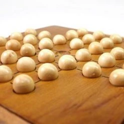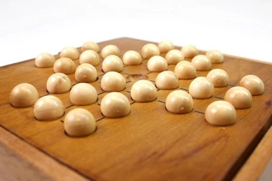 Een klassiek spel dat op verschillende manieren gespeeld kan worden. Leg de 32 kogels in het bord en laat het middelste vak vrij. Bij elke zet spring je over een kogel, die je gelijk verwijdert. De bedoeling is om alle kogels van het bord weg te spelen en ??n kogel in het middelste gat over te houden.